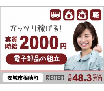 【20代,30代活躍中】【電子部品の組立・検査】20~30代の若手活躍中/未経験からガッツリ稼げる実質時給2000円/昇給有/性別問わず働きやすい/空調完備/土日休み/月収48.3万円