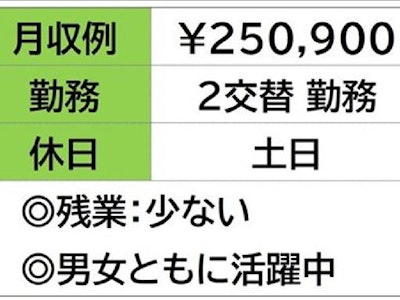 製造機械オペレーターと検査 2交替勤務 土日お休み【三重郡菰野町田光