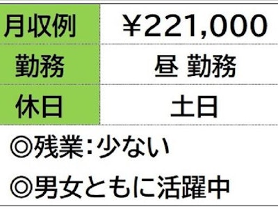 ☆月収例 221,000円♪ 【所定157.5h×1300円+残業10h×1625円】