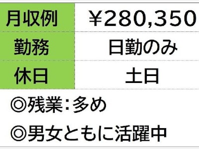 ☆月収例 280,350円♪〈所定162.75h×1400円+残業30h×1750円〉