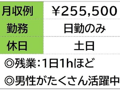 [職種名]: 検査スタッフ ゴム製品 日勤のみ 土日休み