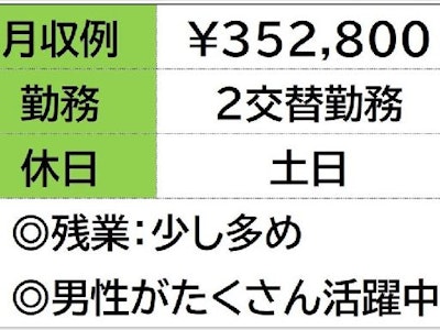 週 5日の所定休日ごとに勤務時間が変わる【2交替】勤務お仕事です。