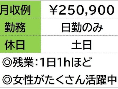 ☆月収例 250,900円♪〈所定168h×1300円+残業20h×1625円〉