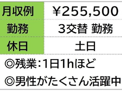 週 5日の所定休日ごとに勤務時間が変わる【3交替】勤務お仕事です。