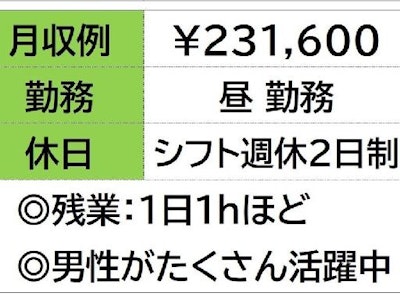 ☆☆月収例 231,600円♪〈所定168h×1200円+残業20h×1500円〉