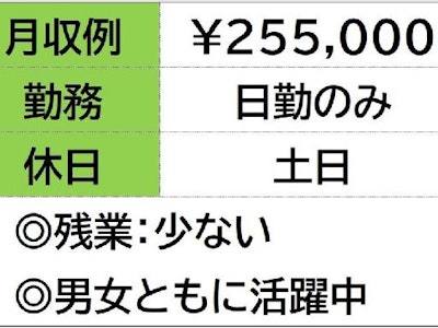 ☆月収例 255,000円♪〈所定157.5h×1500円+残業10h×1875円〉