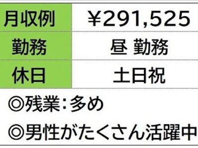☆月収例 291,525円♪ 【所定168h×1300円+残業45h×1625円】