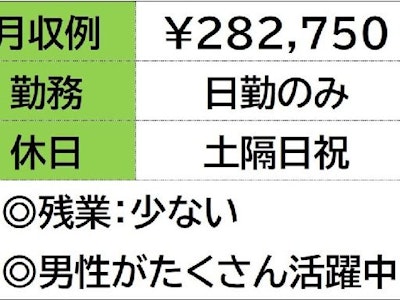 ☆月収例 282,750円♪〈所定176h×1500円+残業10h×1875円〉