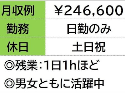 ☆月収例 246,600円♪〈所定168h×1200円+残業30h×1500円〉