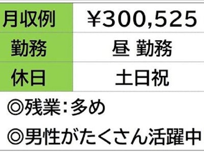 ☆月収例 300,525円♪〈所定156.6h×1500円+残業35h×1875円〉