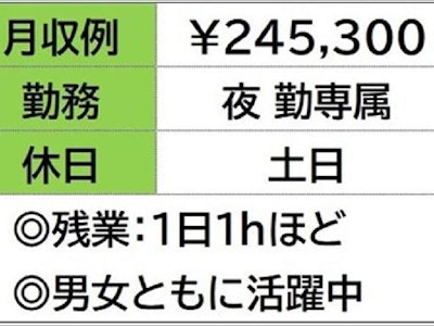 [職種名]: 組立と検査の仕事 家電部品 夜勤 土日休み