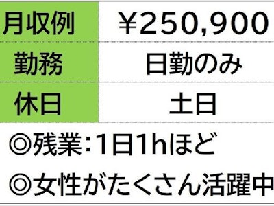 ☆月収例 250,900円♪〈所定168h×1300円+残業20h×1625円〉