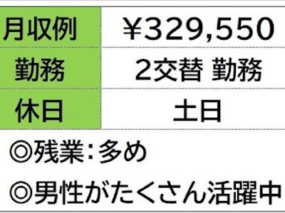 週 5日の所定休日ごとに勤務時間が変わる【2交替】勤務お仕事です。
