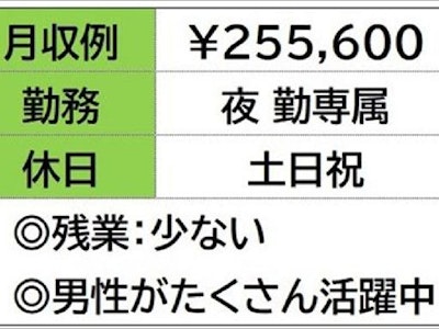 ☆月収例 255,600円♪ 【所定168h×1200円+残業15h×1500円+深夜105h×300円】