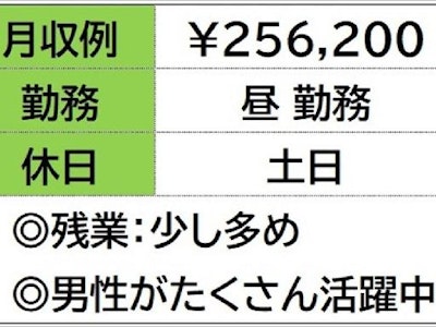 ☆月収例 256,200円♪ 【所定176h×1200円+残業30h×1500円】