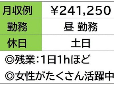 ☆月収例 241,250円♪〈所定168h×1250円+残業20h×1563円〉