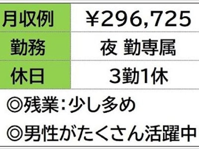 ☆月収例 296,725円♪ 【所定168.75h×1300円+残業33h×1625円+深夜73h×325円】
