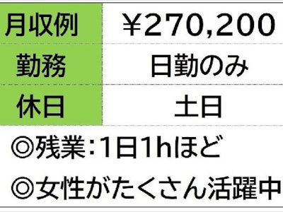 ☆月収例 270,200円♪〈所定168h×1400円+残業20h×1750円〉