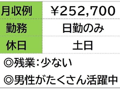 ☆月収例 252,700円♪〈所定168h×1400円+残業10h×1750円〉