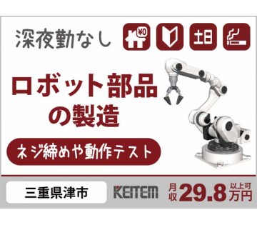 【関節パーツの組立・動作テスト】寮費ずっと¥0の1R完備/未経験OK/日勤と準夜勤の交替シフト/大手機械メーカー/月収29.8万円