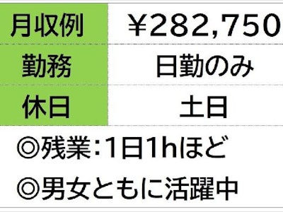 ☆月収例 282,750円♪〈所定176h×1500円+残業10h×1875円〉