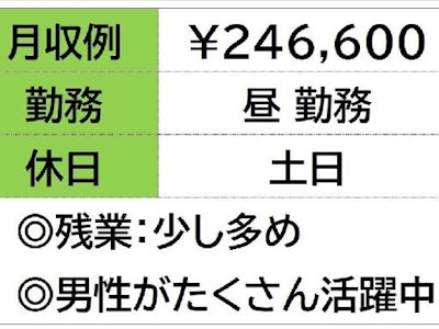 ☆月収例 246,600円♪〈所定168h×1200円+残業30h×1500円〉
