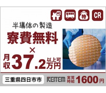 【円盤型・電子部品の機械加工】寮費無料/実質時給1600円/女性多数活躍中/月収37.2万円