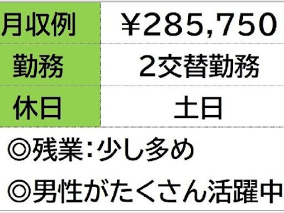 週 5日の所定休日ごとに勤務時間が変わる【2交替】勤務お仕事です。