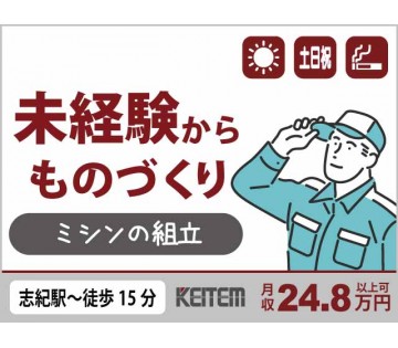 【ミシンの組立】未経験OK/日勤/土日祝休み/残業少なめ/月収24.8万円