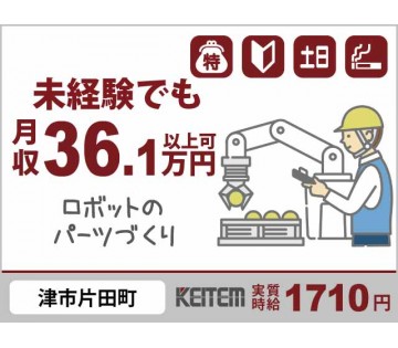 【20代,30代活躍中】【ロボットの関節パーツの組立・検査】時給300円UPでお仕事スタート/未経験から高収入/土日休み/長期休暇年3回/月収36.1万円