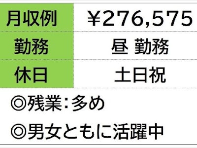 ☆月収例 276,575円♪〈所定162.75h×1300円+残業40h×1625円〉