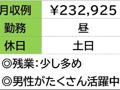 ☆月収例 232,925円♪ 〈所定168h×1100円+残業35h×1375円〉