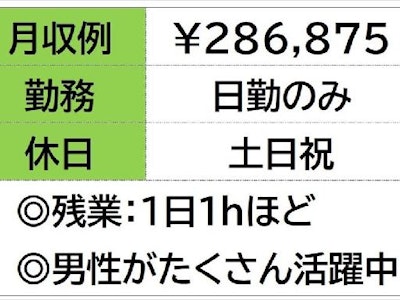 ☆月収例 286,875円♪〈所定160h×1500円+残業25h×1875円〉
