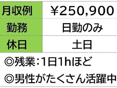 ☆月収例 250,900円♪〈所定168h×1300円+残業20h×1625円〉