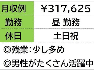 ☆月収例 317,625円♪〈所定168h×1500円+残業35h×1875円〉