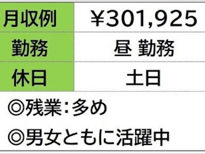☆月収例 301,925円♪ 【所定176h×1300円+残業45h×1625円】