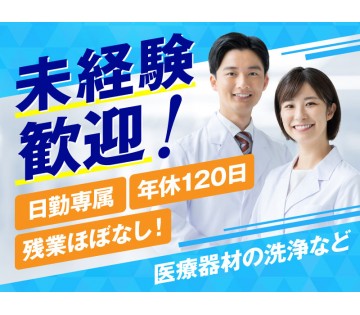 【医療器材の洗浄・滅菌業務】未経験歓迎☆日勤専属◎年休120日☆残業ほぼなし