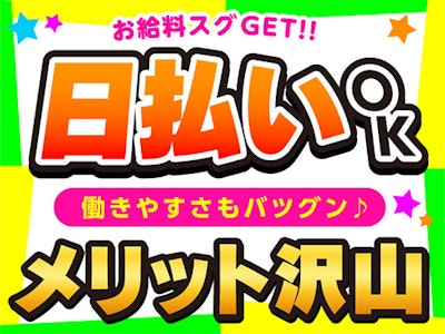 <狭山市>1R寮あり!月収例30万円以上/日勤/週休2日(シフト制)/20~50代の男女活躍中/ワンルーム寮あり/車、バイク通勤可能/交通費支給/日払い・週払い制度あり