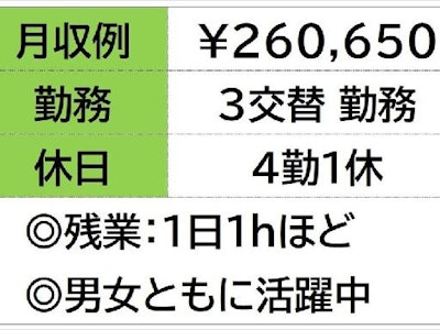 週 5日の所定休日ごとに勤務時間が変わる【3交替】勤務お仕事です。