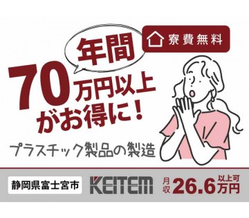 【プラスチック製品の製造】寮費無料で年70万円程お得に/軽作業/未経験歓迎/大手メーカー/月収26.6万円