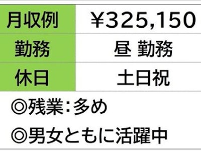 ☆☆月収例 325,150円♪〈所定176h×1400円+残業45h×1750円〉