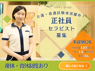 未経験歓迎!安定の正社員雇用【セラピスト】賞与年2回・昇給随時★一生モノのスキルが手に入る!20職種以上の豊富なキャリアプランも魅力☆