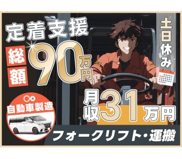 <京都郡苅田町>【フォークリフト】◎定着支援90万円◎月収31万円可&土日休み!自動車工場での部品運搬・ピッキング◎皆勤手当1万円♪【即入社&即入寮OK★社宅費全額補助】【履歴書不要☆オンライン面接O