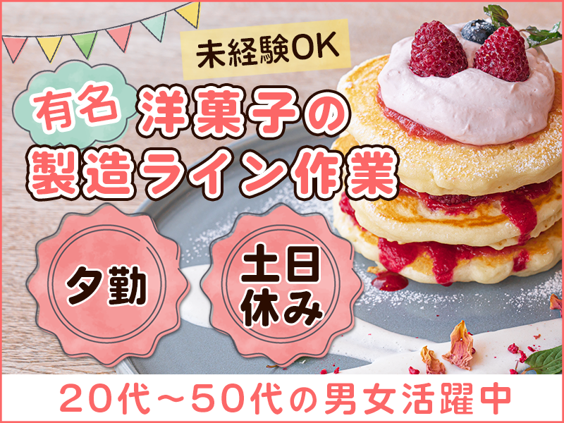 ★毎週ミニボーナス★洋菓子の製造ライン作業や機械オペレーションなど!夕勤☆土日休み!車・バイク通勤OK◎【期間限定】【履歴書不要☆オンライン面接OK】【入社キャンペーン実施中!】