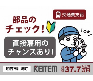 【20代,30代活躍中】【エンジン部品の検査】正社員雇用あり/実質時給1710円/研修あり/残業多めで稼げる/月収37.7万円