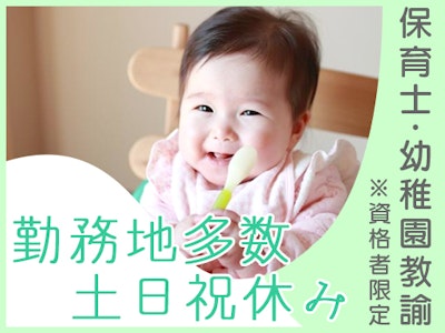 【認可保育園】保育士資格のある方☆手厚いサポートで希望の勤務先をご紹介!家庭優先◎職場環境改善◎キャリアアップ◎各種保険完備◎まずはご登録を♪