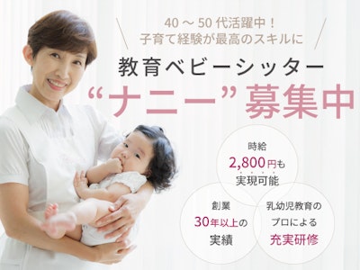 週1日~×1日4hから◎最高水準のベビーシッター【居宅保育版】子育て経験が活かせるお仕事♪充実の研修制度であなたもプロの〈ナニー〉に!