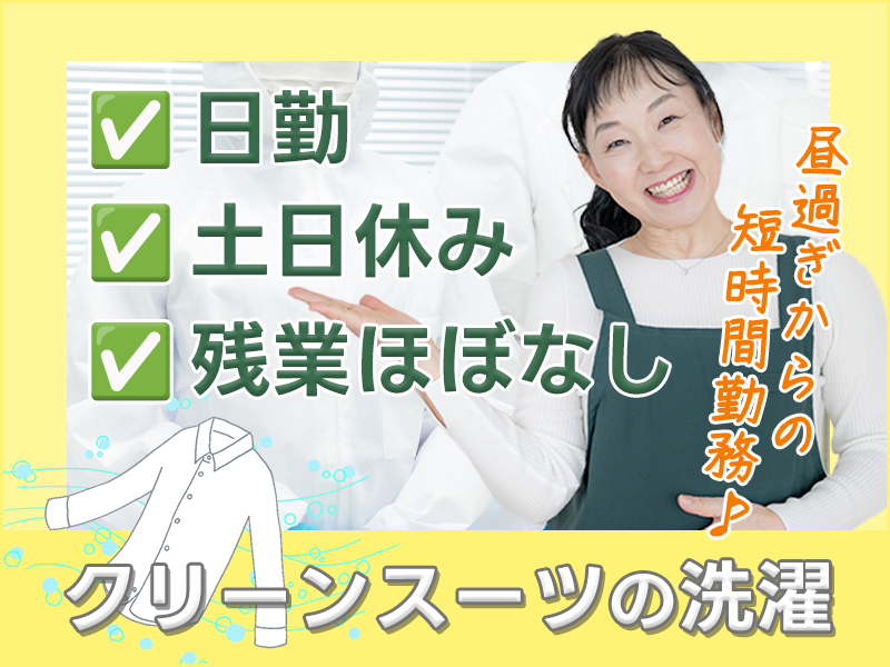 <犬上郡多賀町>【昼過ぎからの短時間勤務♪】扶養内OK!日勤×土日休み!クリーンスーツの洗濯!未経験OK♪【履歴書不要☆オンライン面接OK】【入社キャンペーン実施中!】