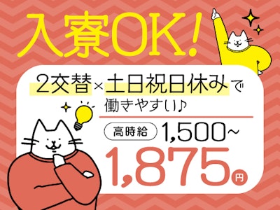 時給 1,500~1,875円・速払いサービスあり・交通費支給(一部規定あり)・うれしい寮費無料☆ 家電レンタル可能!ご相談ください♪【月収例】時給1500円×7時間45分×21日+諸手当=285,375円