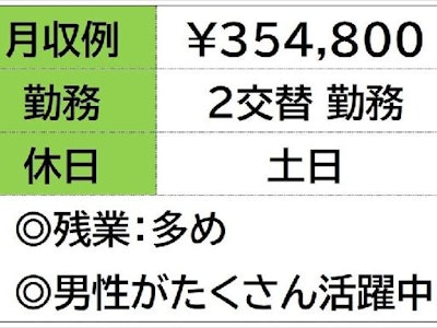 [職種名]: 溶接と検査のスタッフ 2交替勤務 土日休
